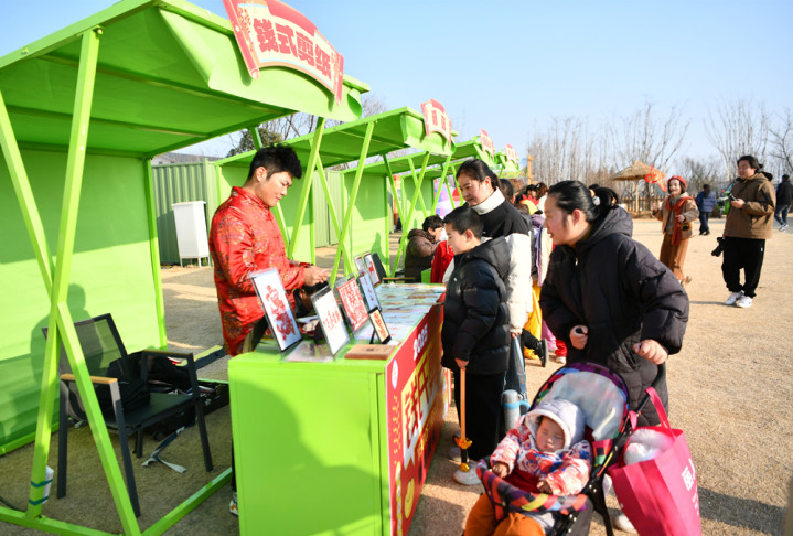 文艺演出之外,“村晚”市集更平添了年味。村民们驻足于书画艺术家的案前,领取饱含新春祝福的春联和“福”,感悟宿城区的民俗风情和传统工艺。现场还有各种传统非遗美食供大家品鉴,元宵、甜油、酒酿、车轮饼……热在乡村、乐在群众,让“村晚”村味儿、农味儿、年味儿更浓。