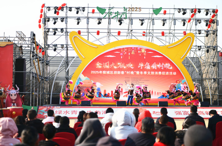 记者了解到,此次活动聚焦“全国大联欢牛角看村晚”主题,生动呈现宿城区乡村振兴的丰硕成果,共分为“看村晚,赏年味”“逛大集,品美食”“迎新春,享民俗”三个不同的主题,通过打造“村晚+非遗市集”的新春文旅活动,沉浸式体验模式让“村晚”焕发时代新风尚,让村民游客在喜庆氛围中体悟中华优秀传统文化的独特魅力,感受乡村魅力,共赴一场文化与旅游深度融合的盛宴。